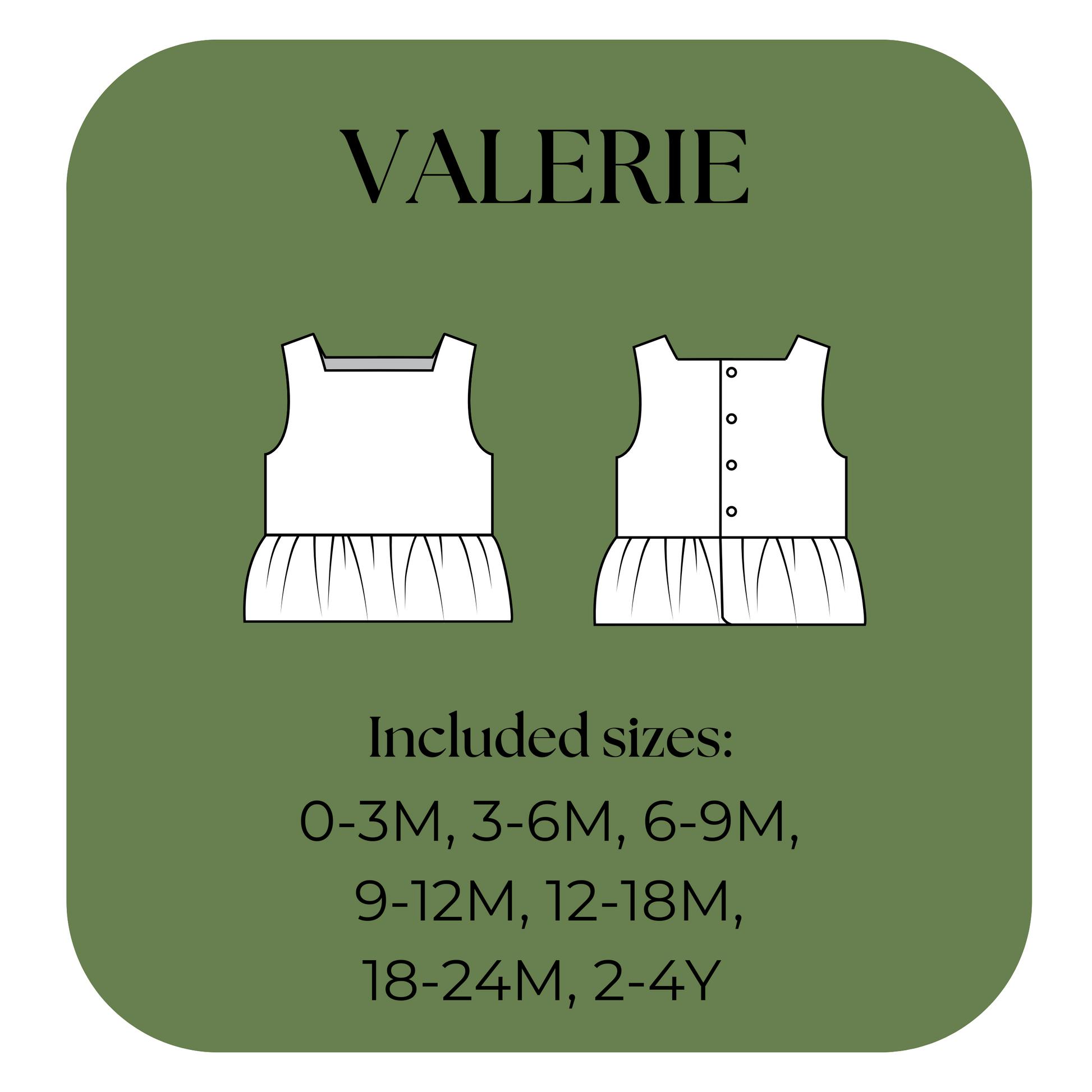 Featuring a square neckline, sweet frill hem, and functional button-up back, the Valerie Top is perfect for everyday play, special occasions, or thoughtful handmade gifts. This PDF pattern includes sizes 0-3 months through 3-4 years, making it a beautiful staple for growing wardrobes.